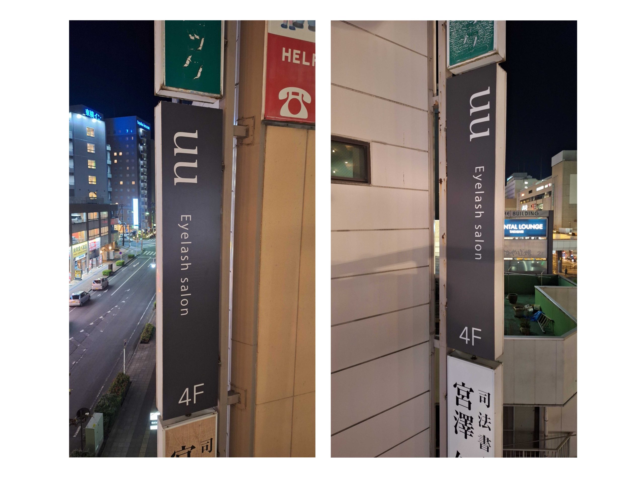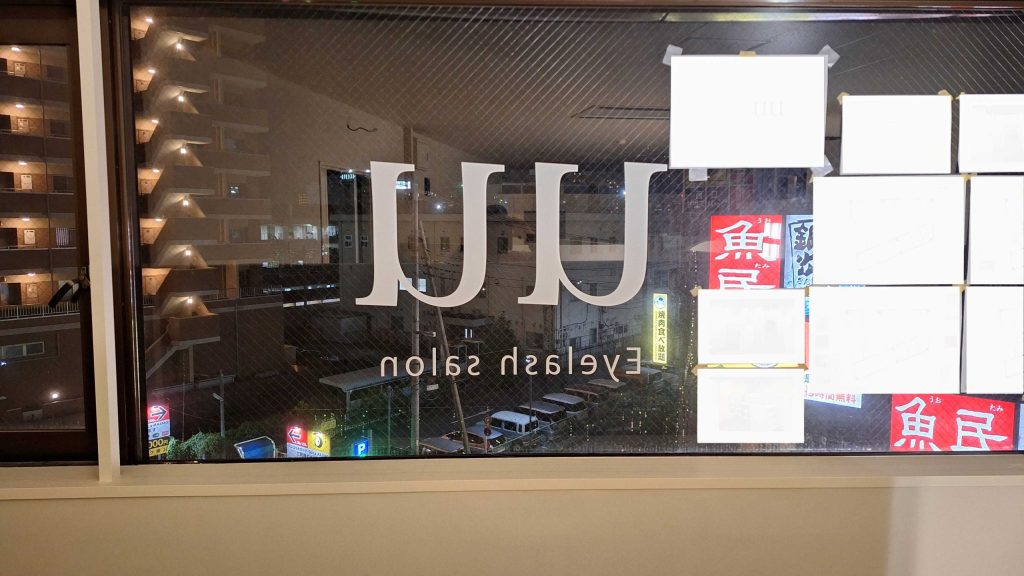 とは言え、今回の現場は環境が良かったからそのくらいで済んだと思います。高所作業車の設置位置が決めやすい事、袖看板の店名変更を上貼りで出来たこと、ガラス面を内側から施工できたこと、この結果が時間に反映されたと思います。