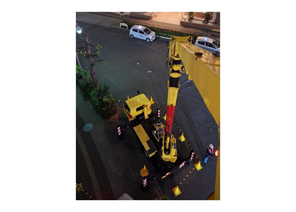 夜間作業を選んだ理由が、公共交通機関が営業を終えた後の交通量が減った時間帯にするためでした。どうしても日中しかできない場所もありますが、安全のために夜間作業ができるのであれば弊社では夜間帯の作業を選びます。今回は現場が駅から近い場所で歩道の幅も広かったこともあります。